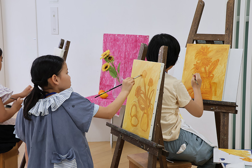 まずは道具の使い方からはじまり、少しずつ油絵の具に慣れていきます。