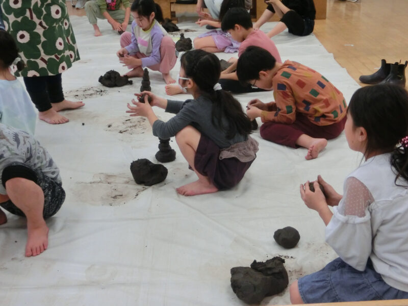 土ねんどをちぎってこねて、くっつけて、自分だけの灯りの形を考えてみよう。
