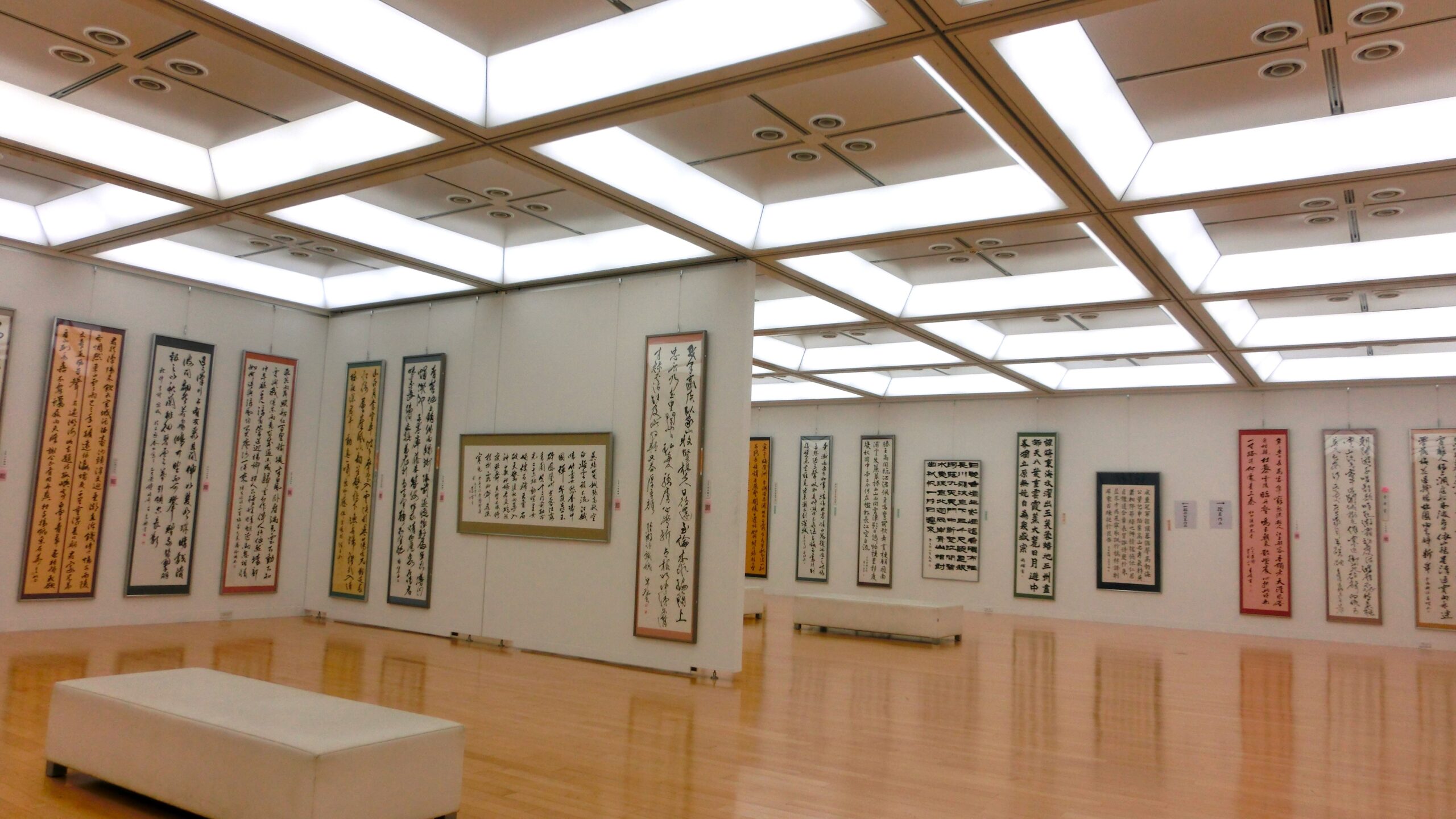 一般部・教育部公募及び役員の書作品展示。約270点。