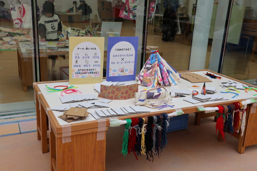 今回のテーマは「身につける」。例えば、ぼうしやマントなど身につけたくなるものを自由に発想してつくってみましょう。
