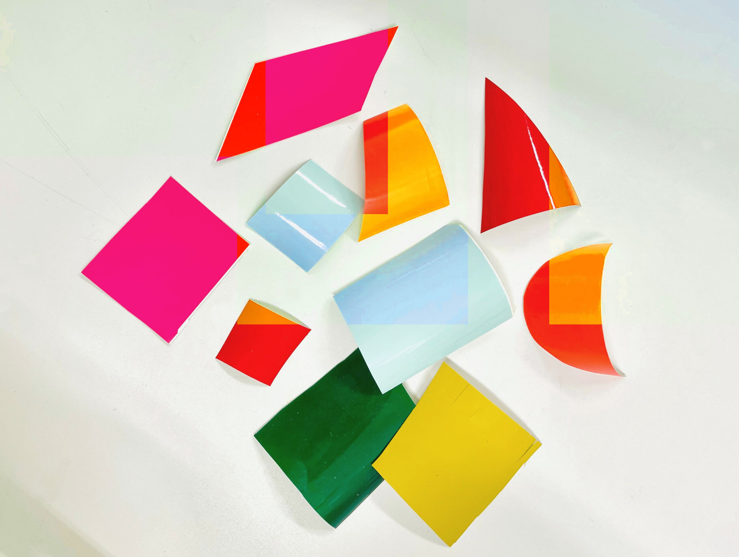 カラフルで、いろいろなカタチ・大きさのシールがアトリエに大集合!