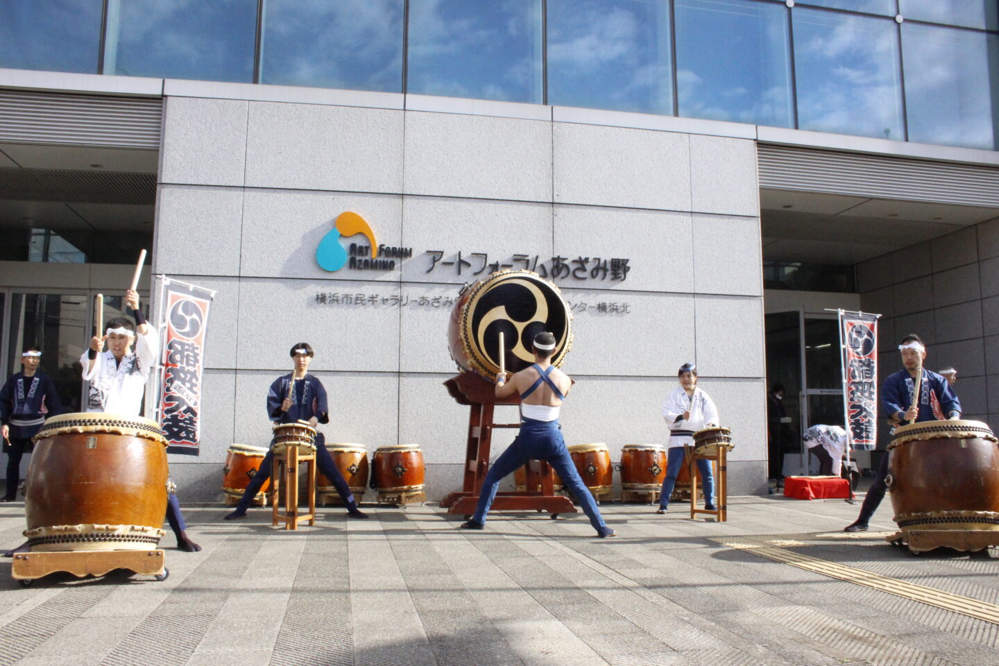 正面玄関前の広場・アートプラザに響く勇壮な和太鼓演奏に加え、